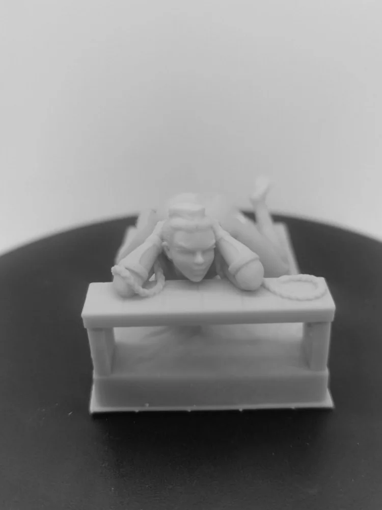 1. The proportion of the character of this model is 1/24. Since she is lying on her stomach and curling up, so