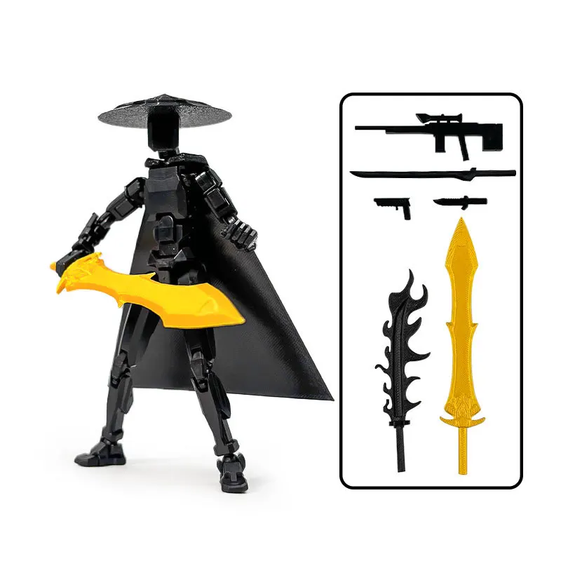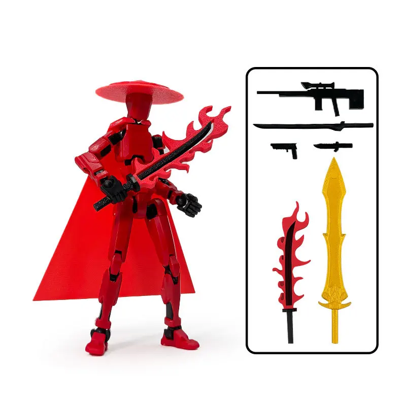 Jianghu Chivalry Lucky 13 Figure Soldier 3D Printed Toy Jointed Movable Lucky 13 Dummy Action Figure Flaming Sword Accessories