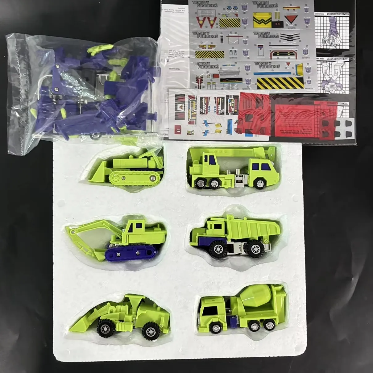 | Color | Devastator, Devastator-no box, Trailbreaker, Inferno, Springer, Grapple, Tracks, Octane, Hoist, Sideswipe, Smokescreen, Prowl, Scourge, Hound, Mirage, Sunstreaker, Wheeljack, Blitzwing, OP prime |